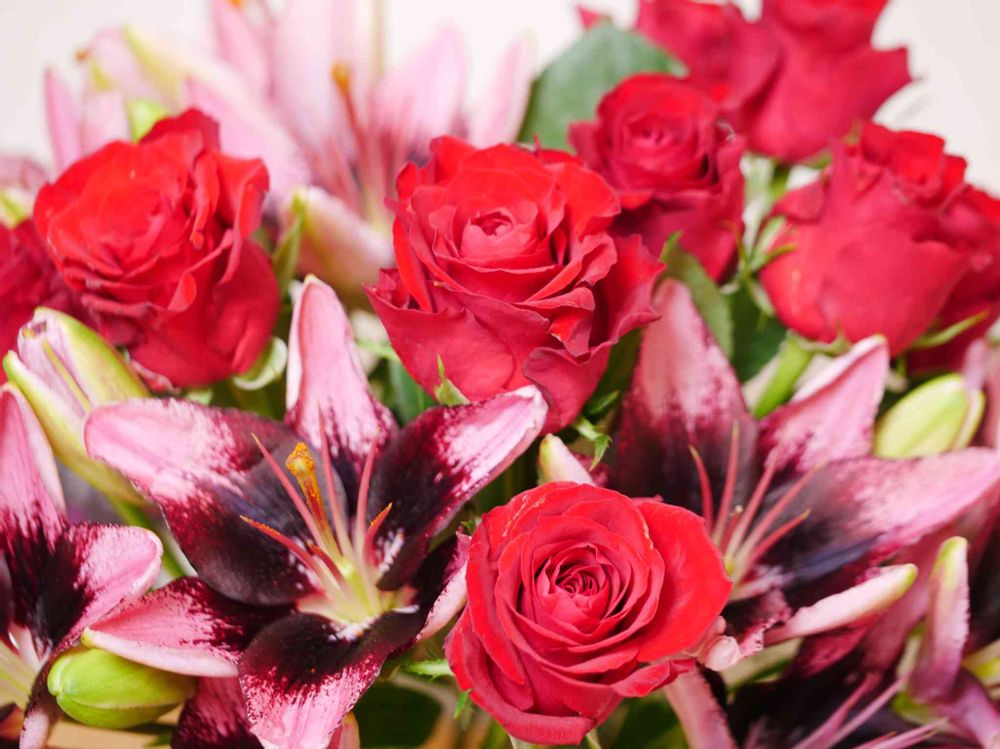 今回は、シックなスカシユリと赤いバラの組み合わせです。❤️