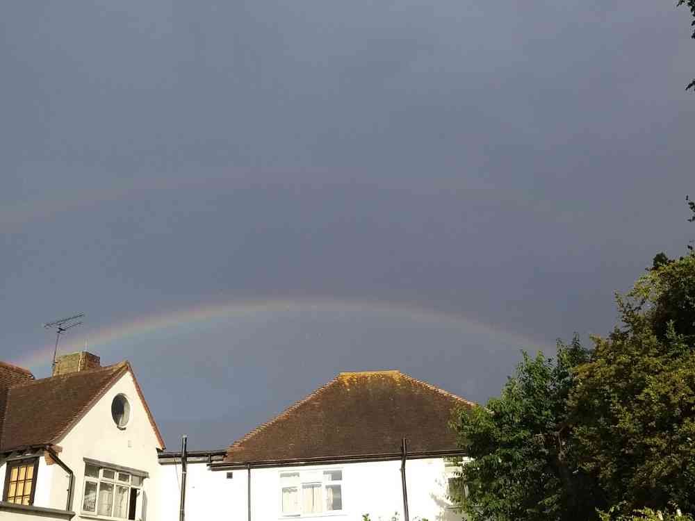 またこちら特有のお天気、西側は太陽と青空、うちは晴れてるけど少し雨☔。東に虹🌈