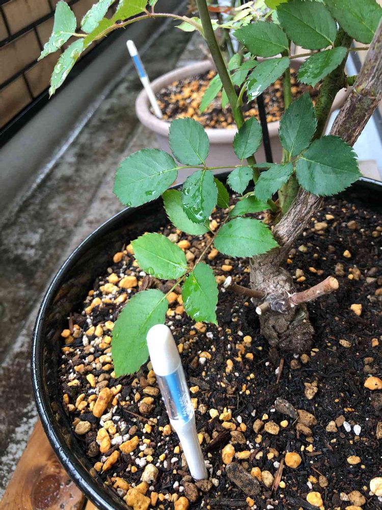 水遣りチェッカーSUSTEE(サスティ)です。2階ベランダが思いの外、植物育てに向いていることを発見。よっしゃあ!と薔薇3鉢とクレマチスも移動して1週間になります。