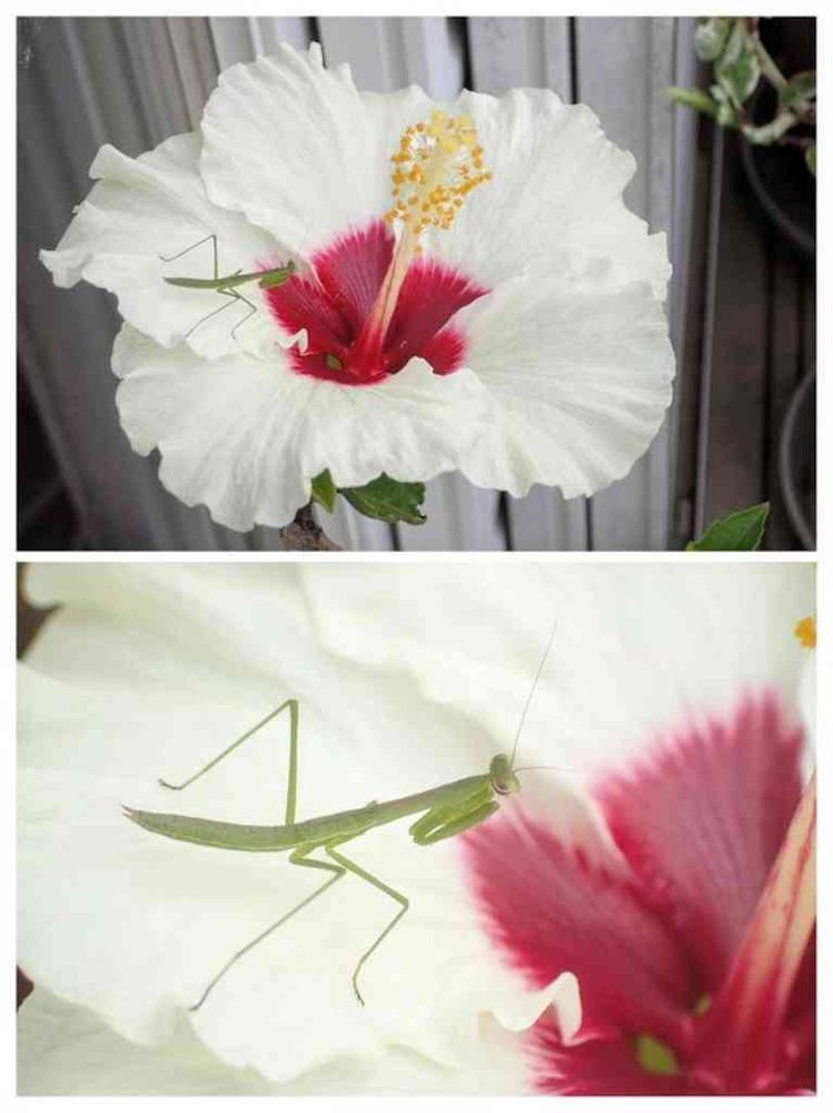 綺麗なハイビスカス🌺にカマキリ赤ちゃんも