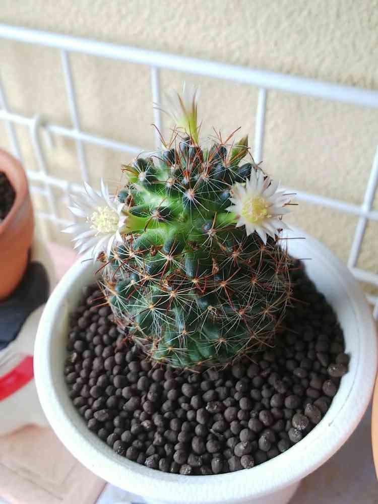 マミラリアでも、他の子はパーッと咲いて、終了って感じが多いのに、この子は3つくらいの花をひっそりと咲かせ、花が終わる前に次の蕾がスタンバイして選手交代って感じで、見た目にあまり変化を感じられない😅