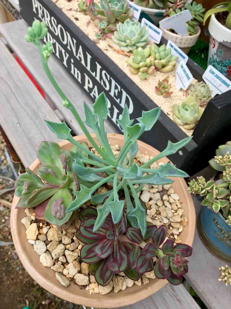 マサイの矢じりって私んちにもあるけど、花芽が伸びて伸びてどこまで〜ってなってる😅