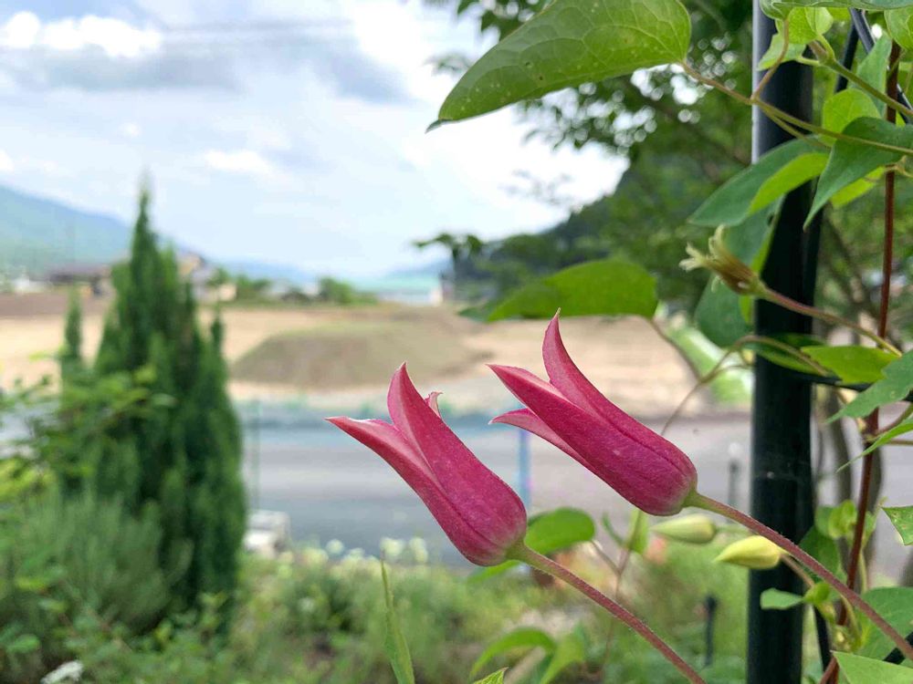 可愛いクレマチスさんの田んぼを見ながらのささやきですね😆