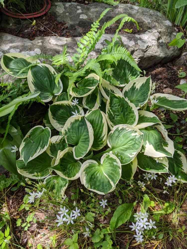 ホスタも素敵だけれど、周りの白い小花が柔らかい雰囲気を演出中ですね〜☺️