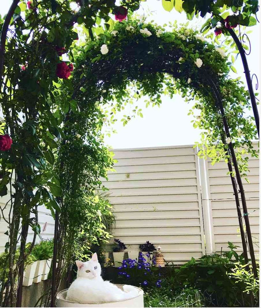 素敵なバラのアーチの下でくつろげるなんて幸せなニャンちゃんですね🤗💗