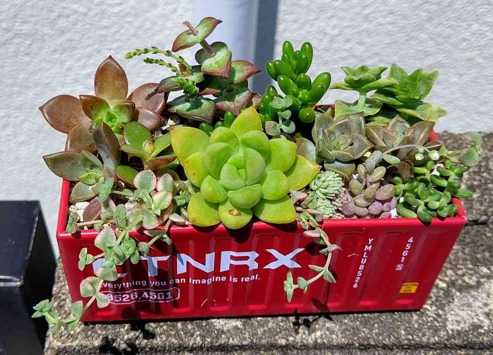 可愛い缶に寄せ植え❤️とてもチャーミング❣️🎶🎶