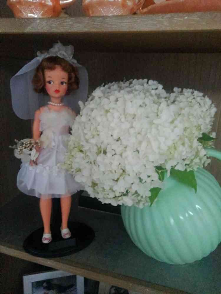 タミーちゃんにもアナベルのドライフラワーをつけてます。