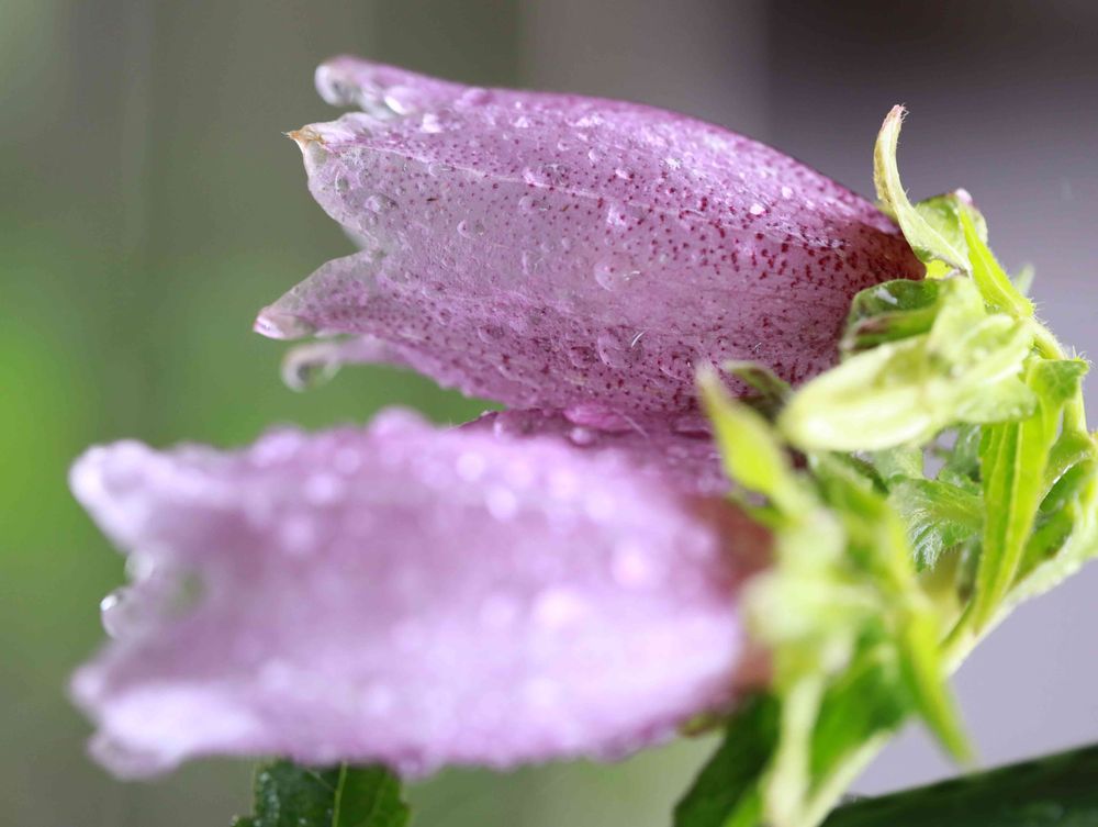 雨の中で静かに咲いているホタルブクロ