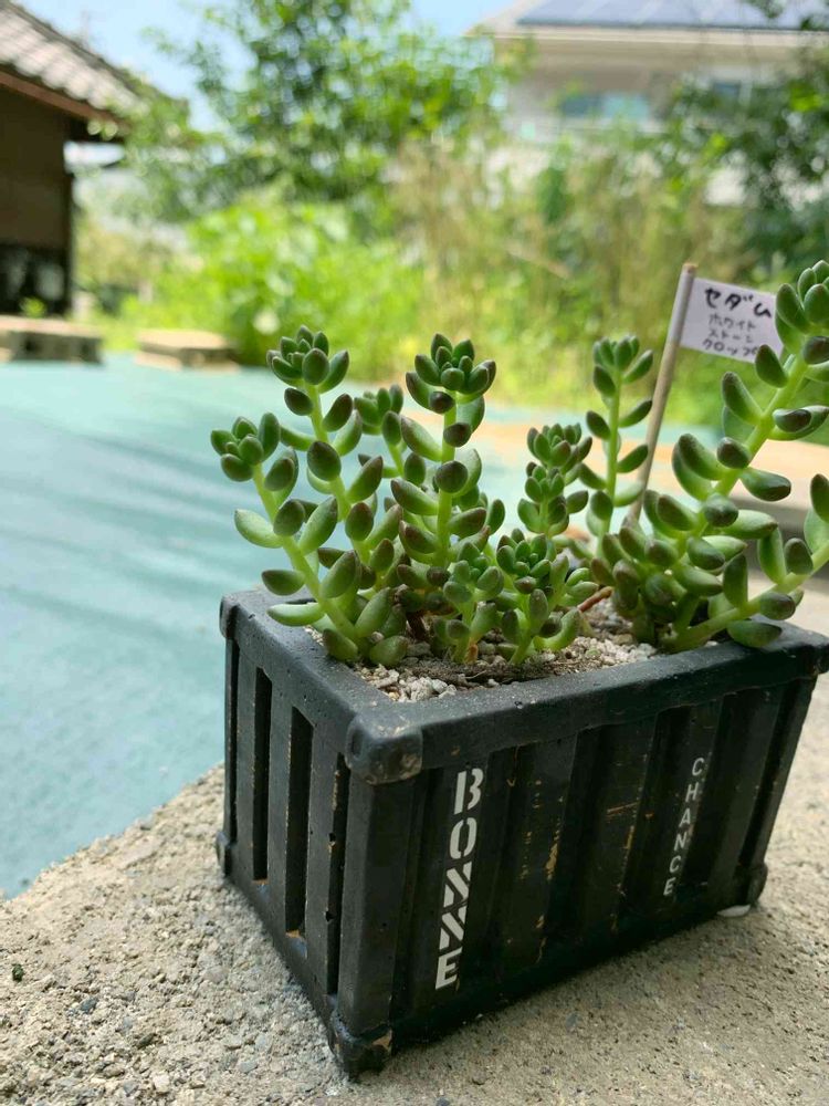 多肉屋さんでゲットしたコンテナ風リメイク鉢!!かわいすぎて、梅雨ですが秋まで待ちきれなくて植え替えしちゃった、、笑