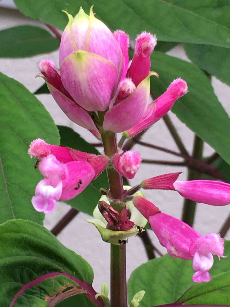 サルビアといえばオレンジががった赤では?その後紫色が出てきて最近は他の色も。この色のピンク初めて見たような気がする(╹︎◡︎╹︎*)