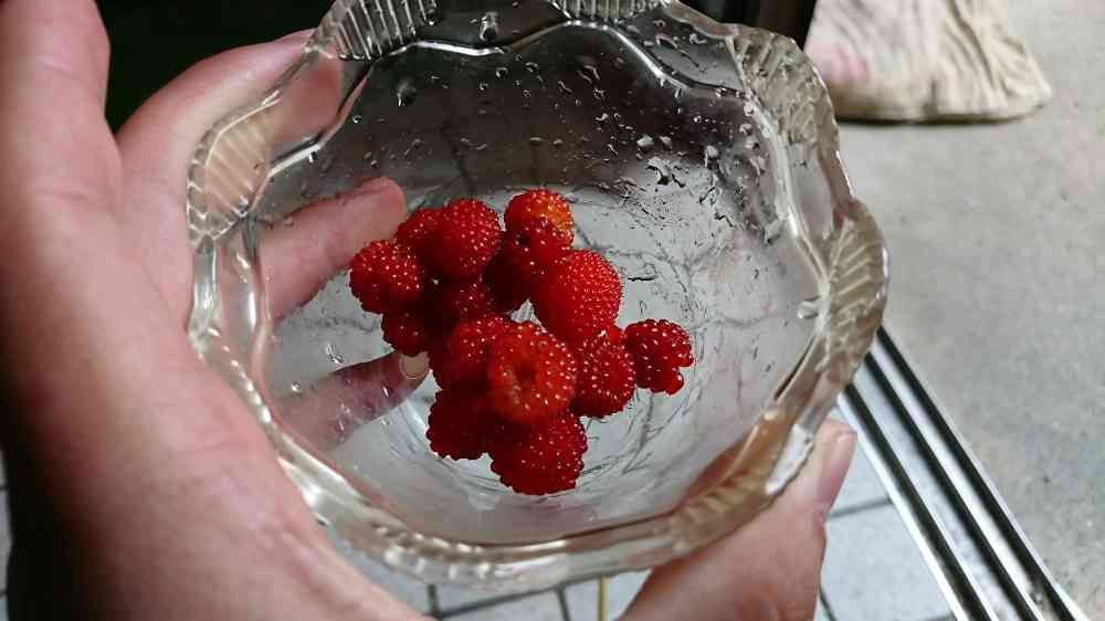 懐かしい!「野いちご」学校の帰り道で食べましたよ〜熟してるのには「中にアリンコさん」が居たりして…「フッフツ!」して食べたけどお腹こわした事ないなぁ〜他にも「クワの実(唇、舌👅がムラサキに…)」「イチイの赤い実」などなど…これは…「アリンコさん」いない実です!