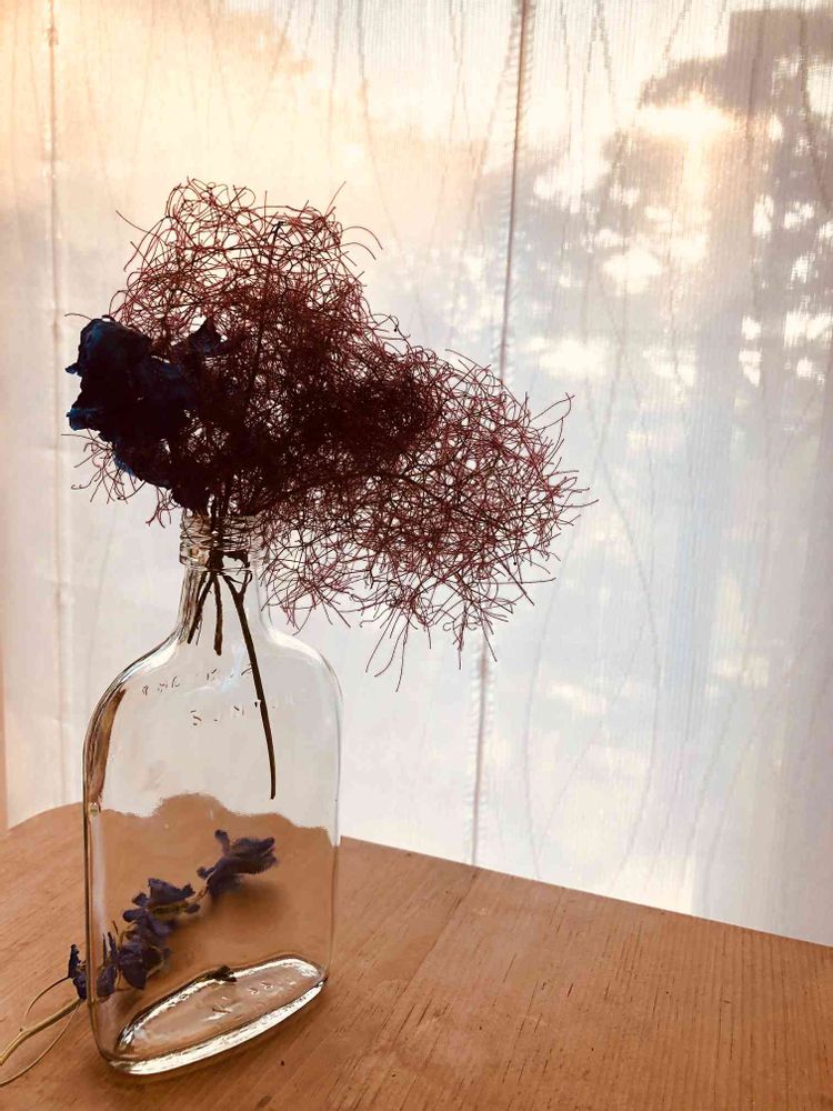 花瓶は、ウイスキーの容器でしょうか? おしゃれですね〜
