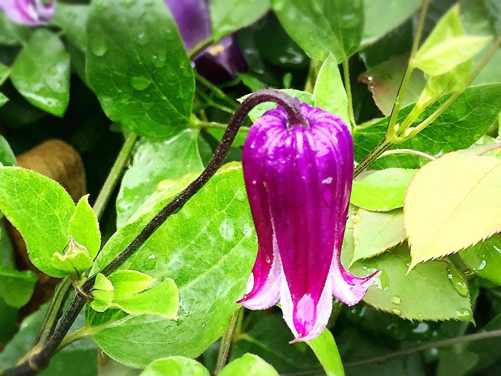 品種はわからないんだけど、ここにはいろんなクレマチスが咲いてて、ベル型は特に可愛いですね💕