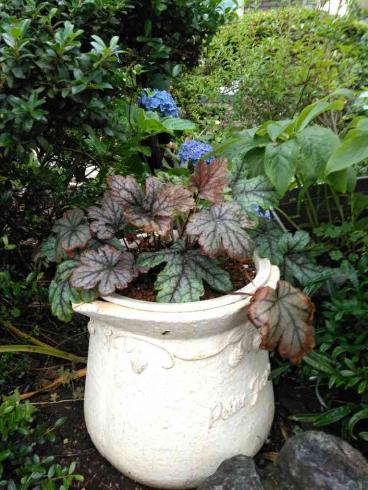 朝の散策の時に、通り道のお宅の、石垣の上の花壇に、置かれていました。