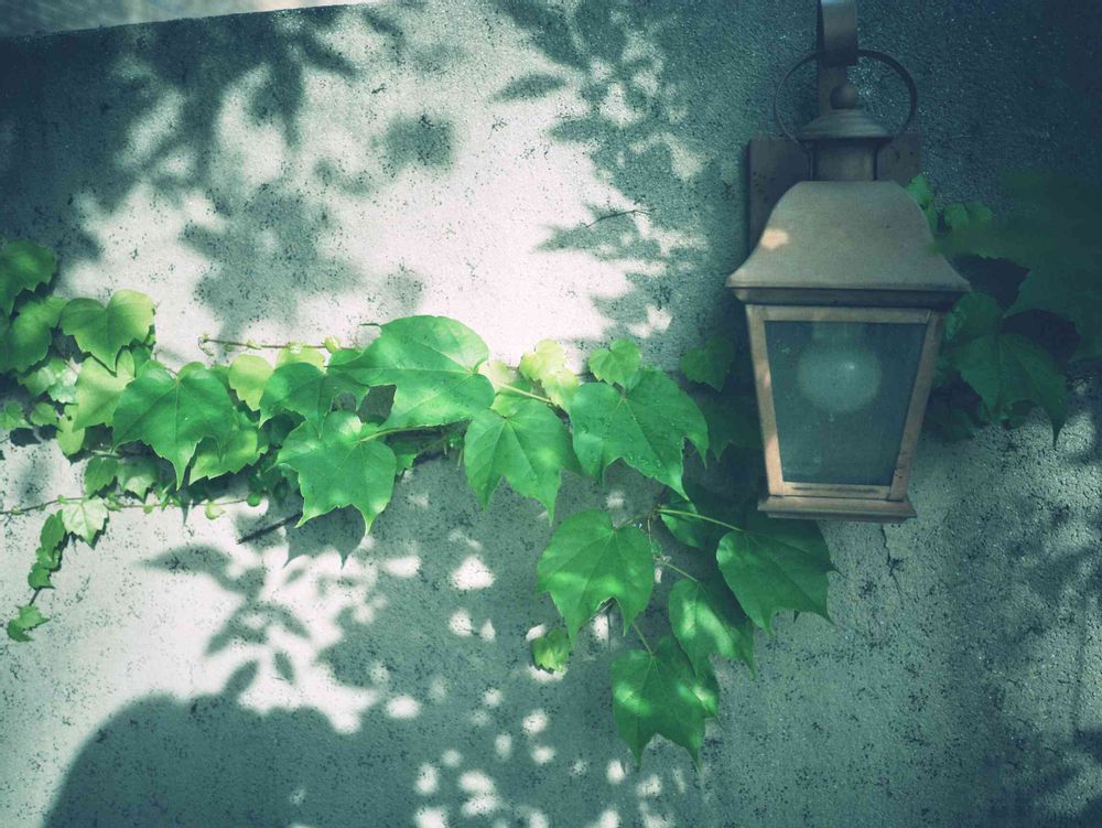 ナツヅタとつるバラの影のコラボ、お気に入りのコーナーです❤︎でもナツヅタの繁殖力がすごくて、このpicの状態を保つのが大変です💦