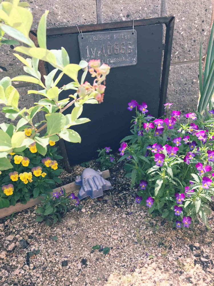 昨年花の終わったビオラを抜いてここに積んでおいたらタネが付いて居たらしく、芽が出て来て今満開です😳