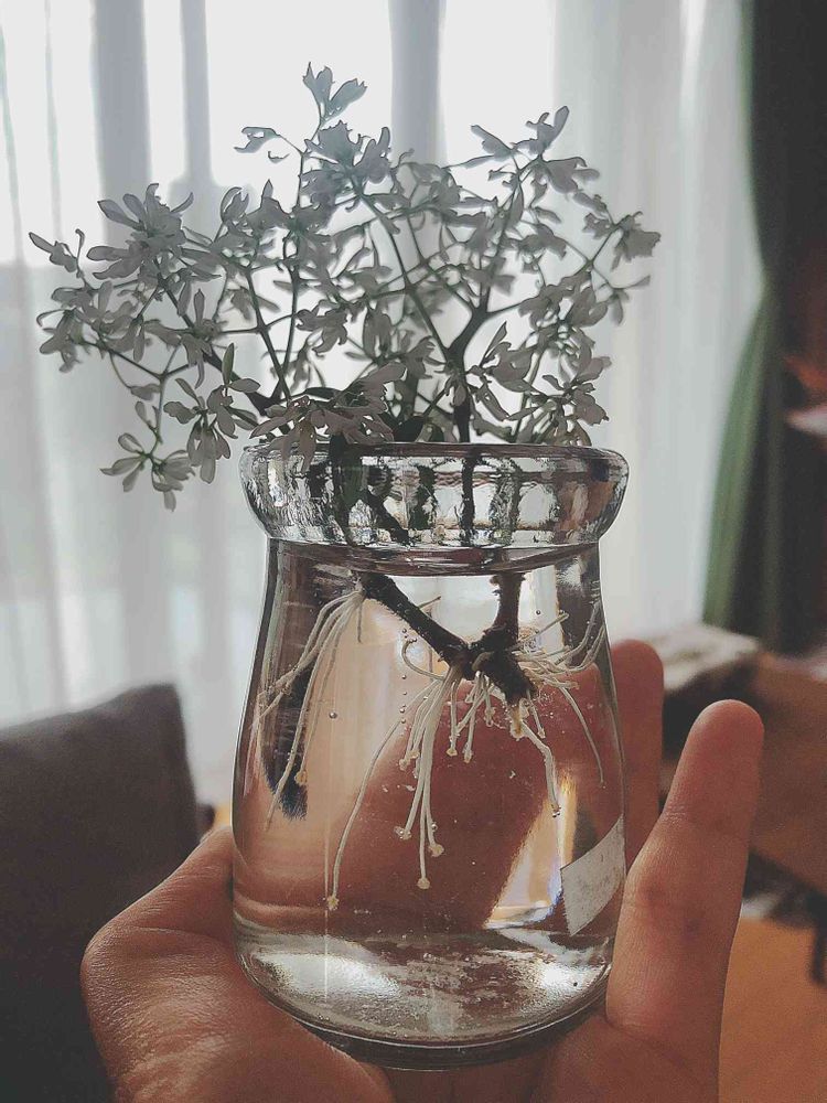 最初はお花を浮かべてたんですが、だんだん根が出てきて、、、😳❣️今は花瓶に入れて様子見てます!