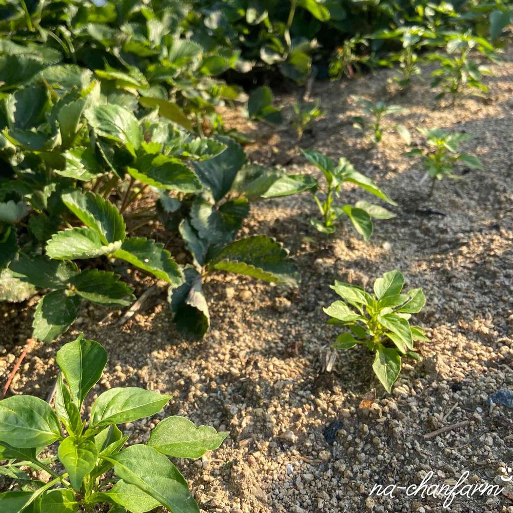 鷹の爪。🍓の隣に畝間を作らず定植。