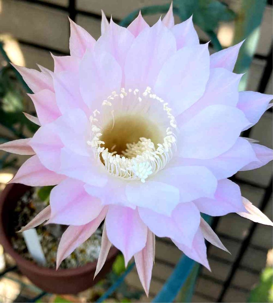 我が家の植物:本体はまだ直径5cmほどしかないのに、倍以上のサイズの花を咲かせてくれました。サボテンって内に秘めている力がすごいなぁといつも感心させられます。