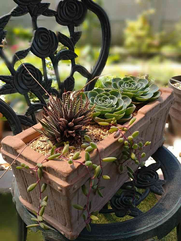 お友達からバラバラになって頂いたのを適当に飾ってみたよ😃 そしたら組み合わせがダメなんだって😢 やっぱり多肉は勉強不足だよ😰