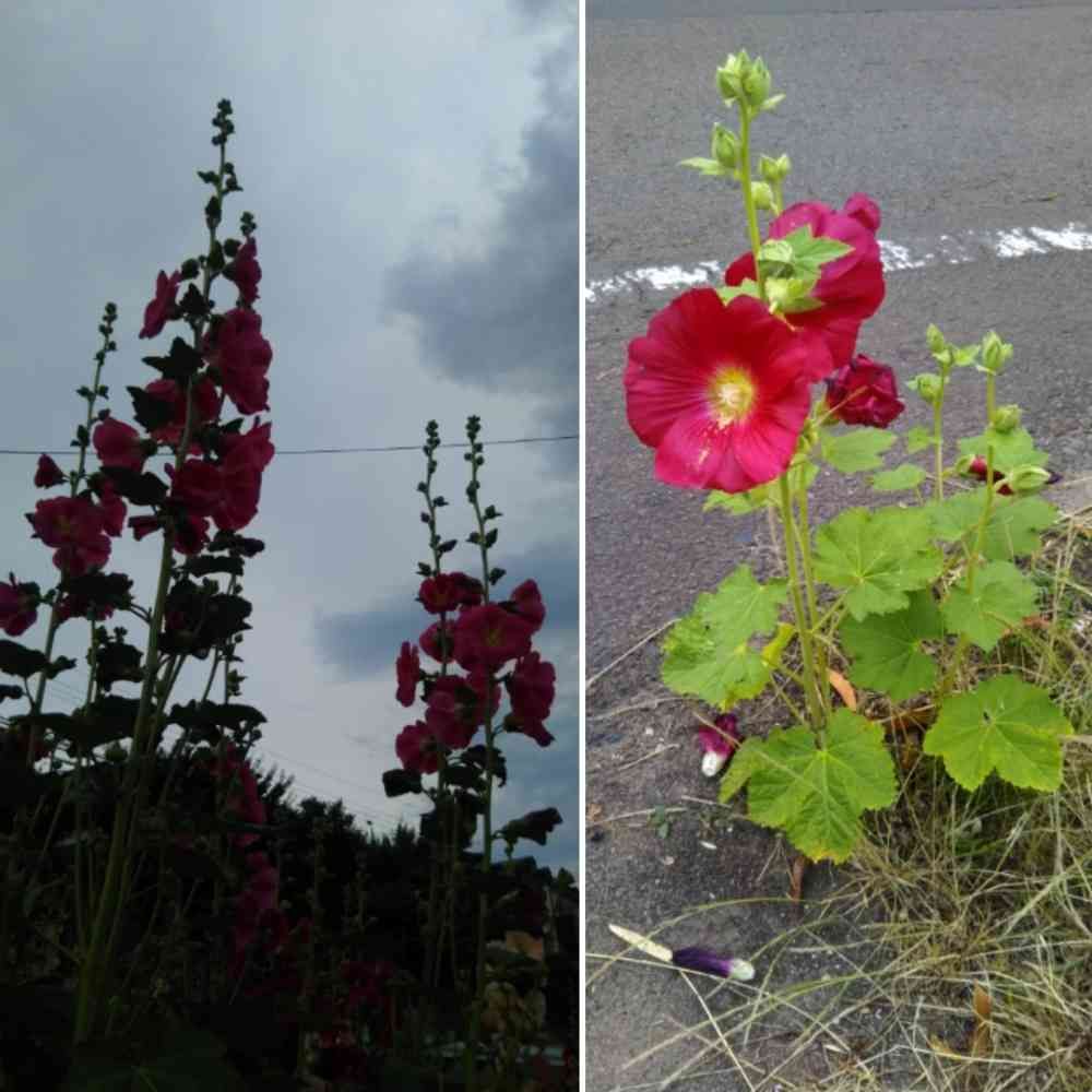 立葵(タチアオイ),バス停,赤色の花の投稿画像