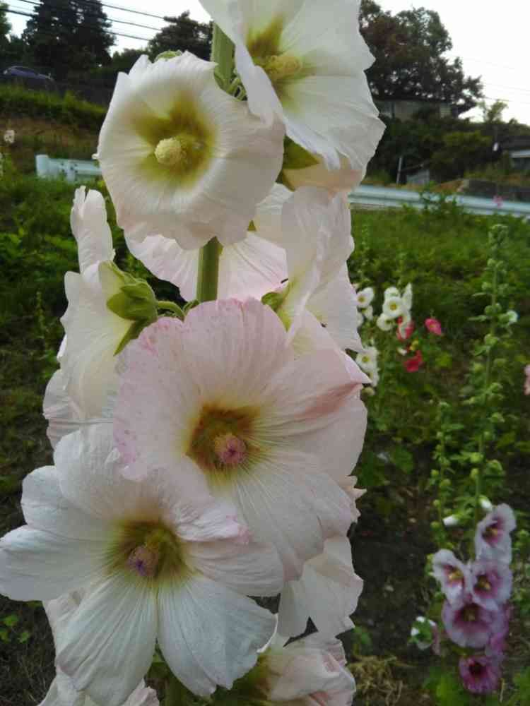 立葵(タチアオイ),白い花,バス停の投稿画像