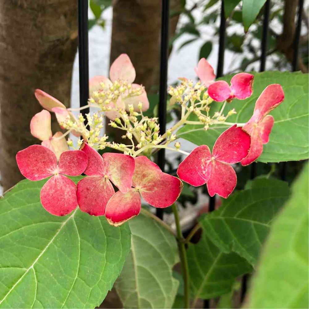 お出かけ先,ガクアジサイ,赤い花の投稿画像