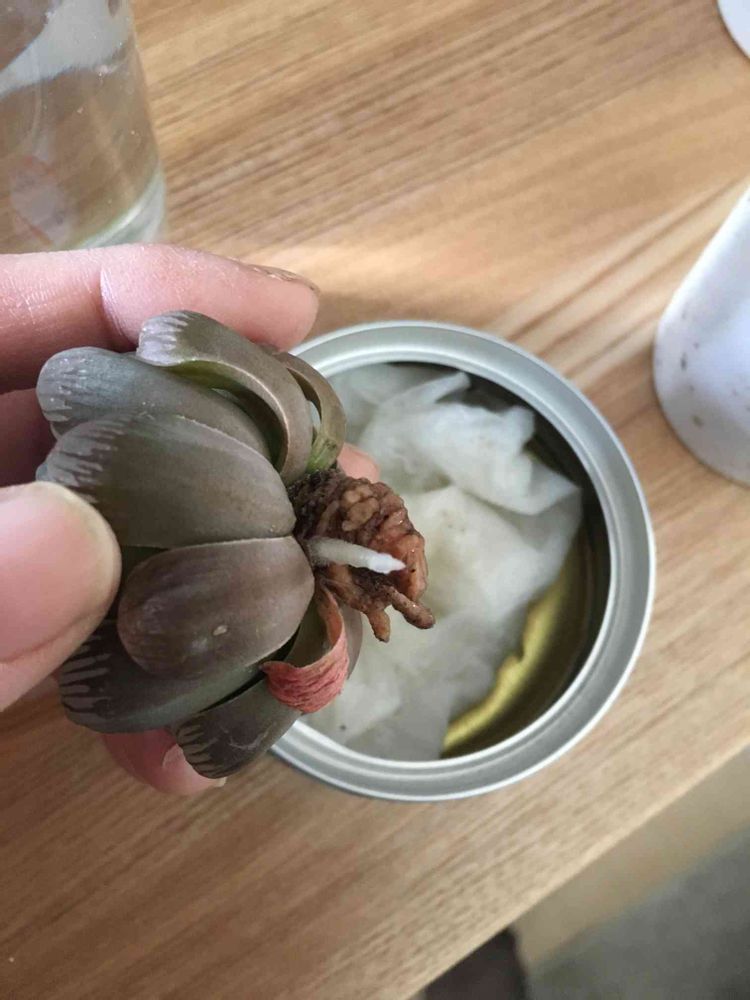 FBで水苔でハオルチアの根出しをしている人がいて、考えた末、キッチンペーパーで。