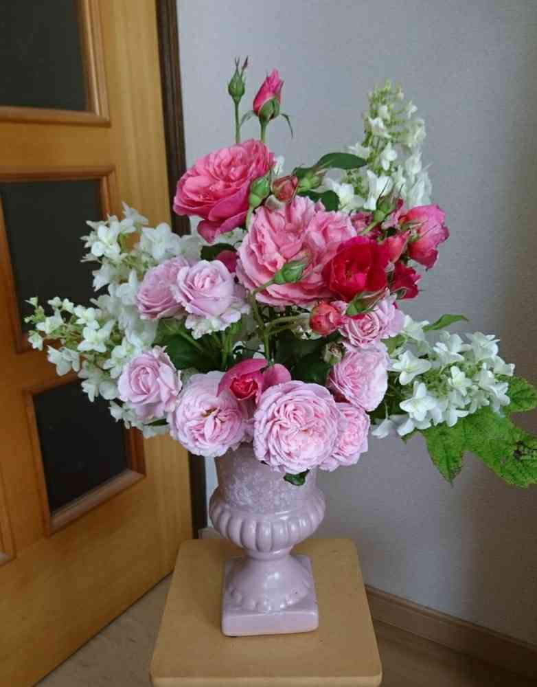 バラは庭でもいいですが、綺麗なお花だけを飾ると下手ながらもまずまず満足です🤗
