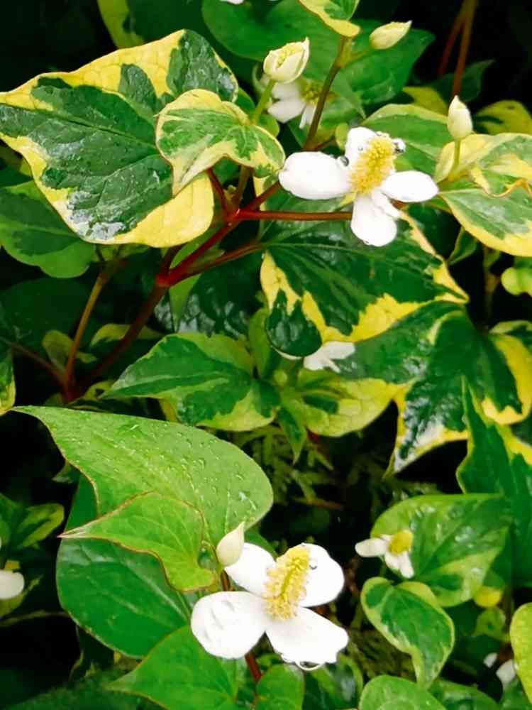 斑入りはめずらしいですね 花木センターで見かけたくらいかしら?お隣さんの空き地には八重のドクダミがあります 大事にされてます