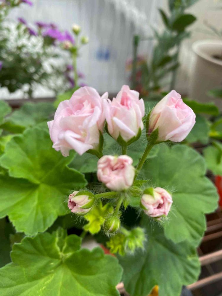 お迎えして約1ヶ月になる八重咲きゼラニウム🌸やっと花開いてきました✨