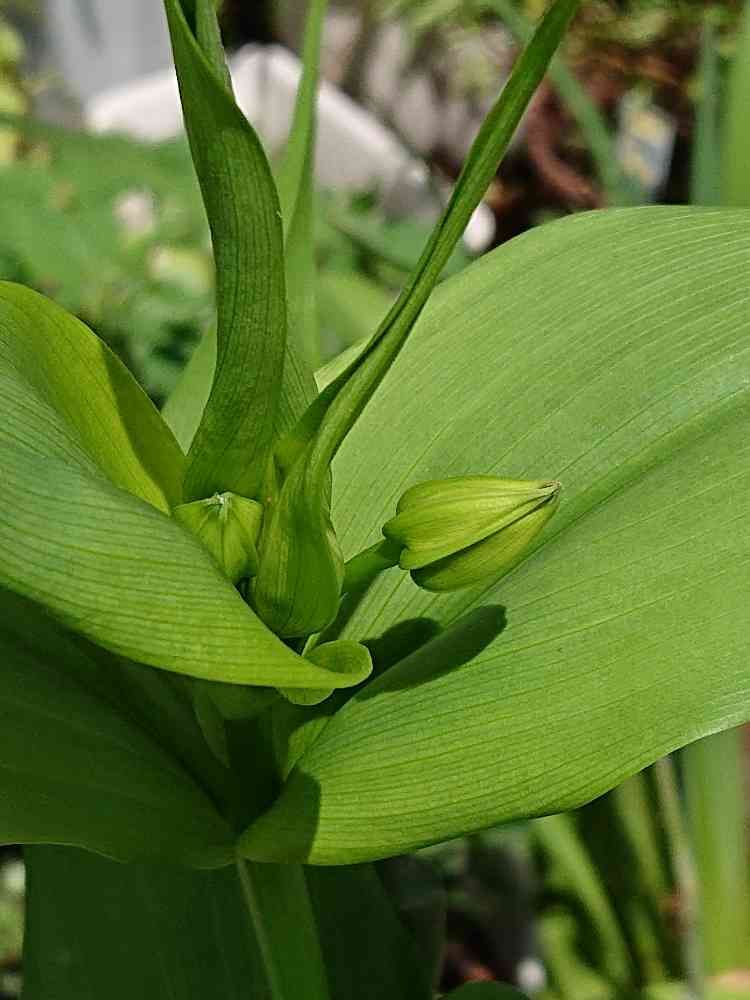 グロリオサの角度を変えて見ると、蕾が出て来ていた。
