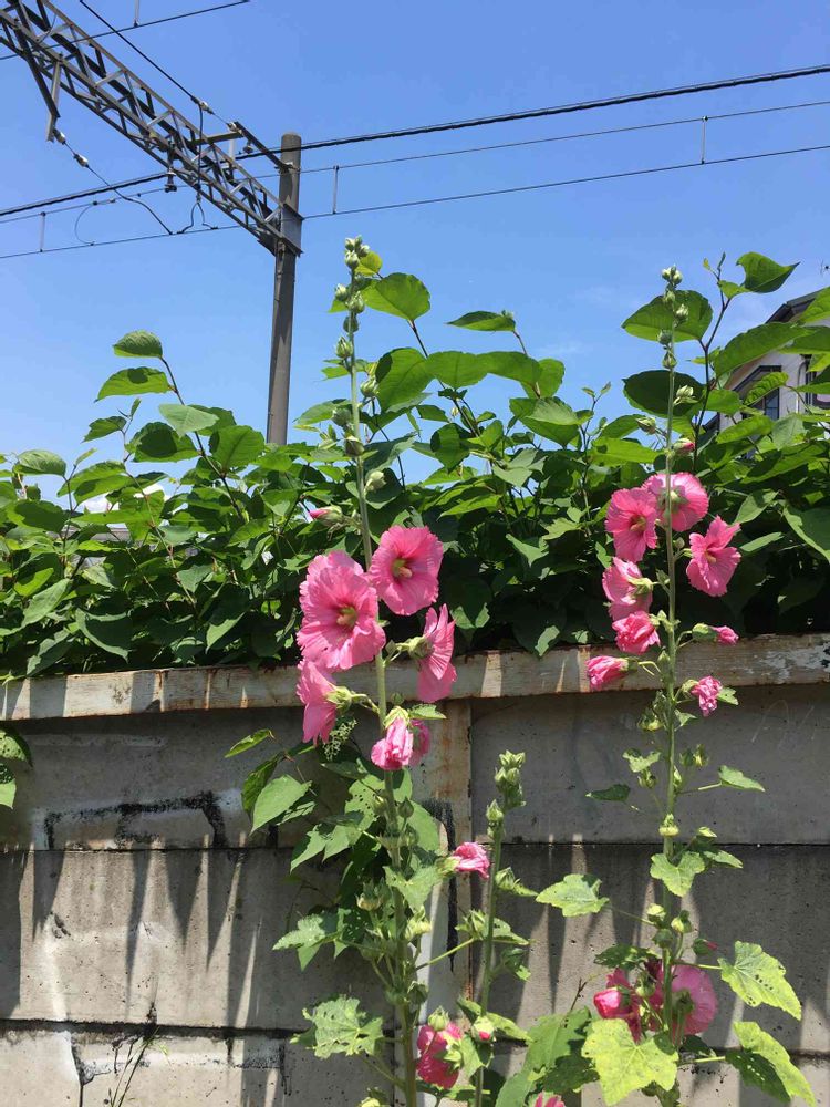 電車の沿線側に毎年咲く花、あおいという花だと思うが、子供の頃我が家の庭先にありましたが、あまり好きじゃなかったのだけど、フランスの画家のモネの生家の農園に行った時、沢山咲いていて、場所が変わると素晴らしく素敵な花に見えたのを懐かしく思う。最近、まっすぐに伸びる花をスケッチしようかと思う