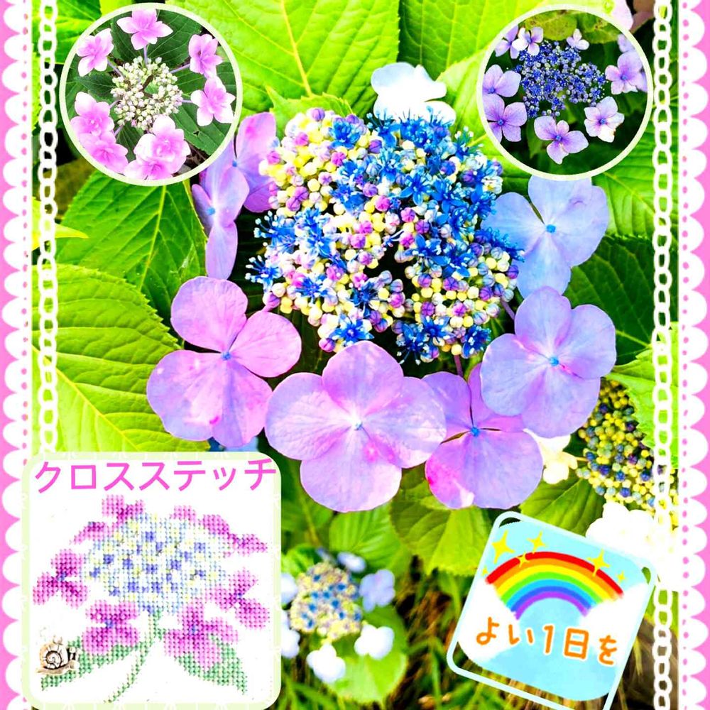 ガクアジサイのクロスステッチ可愛い🥰💕