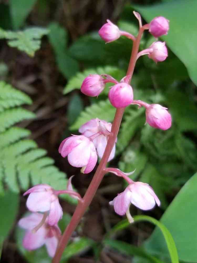 6月から8月にかけて山地帯で咲く植物ベニバナイチヤクソウ。 ツツジ科イチヤクソウ属の多年草です。
