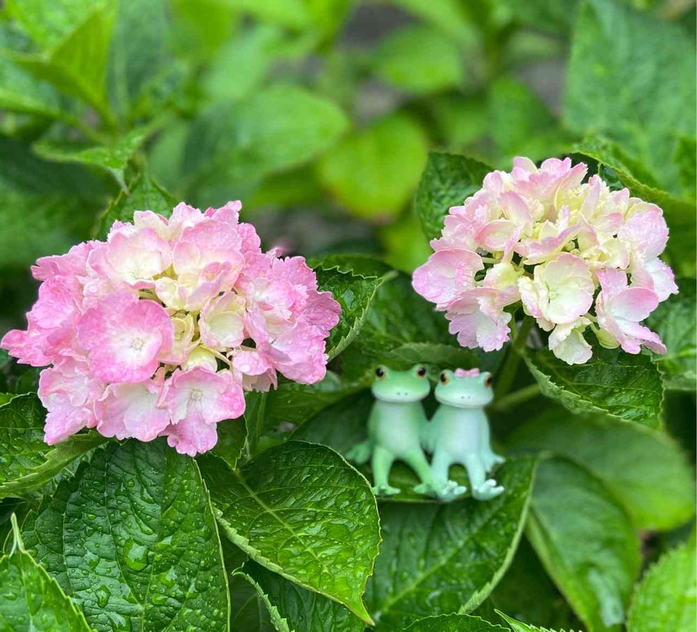 可愛いほんのりピンクの紫陽花に、コポたんカップルがデートですね~⸜(* ॑꒳ ॑* )⸝♡*.+゜