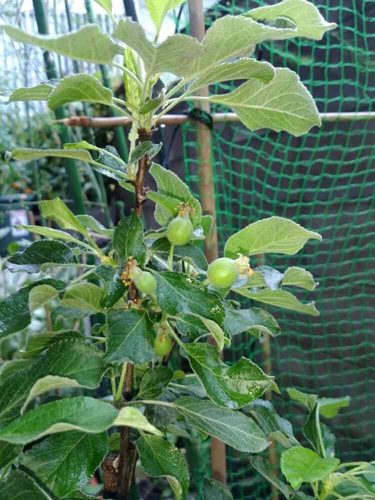 リンゴ.アルプス乙女の実が膨らんできました😊🍎 でも今年は不作気味…😥いつもなら30個以上は成るのに今年はこのままだと10数個くらい。