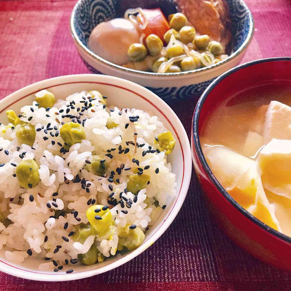 グリーンピースでお豆ご飯にしました。