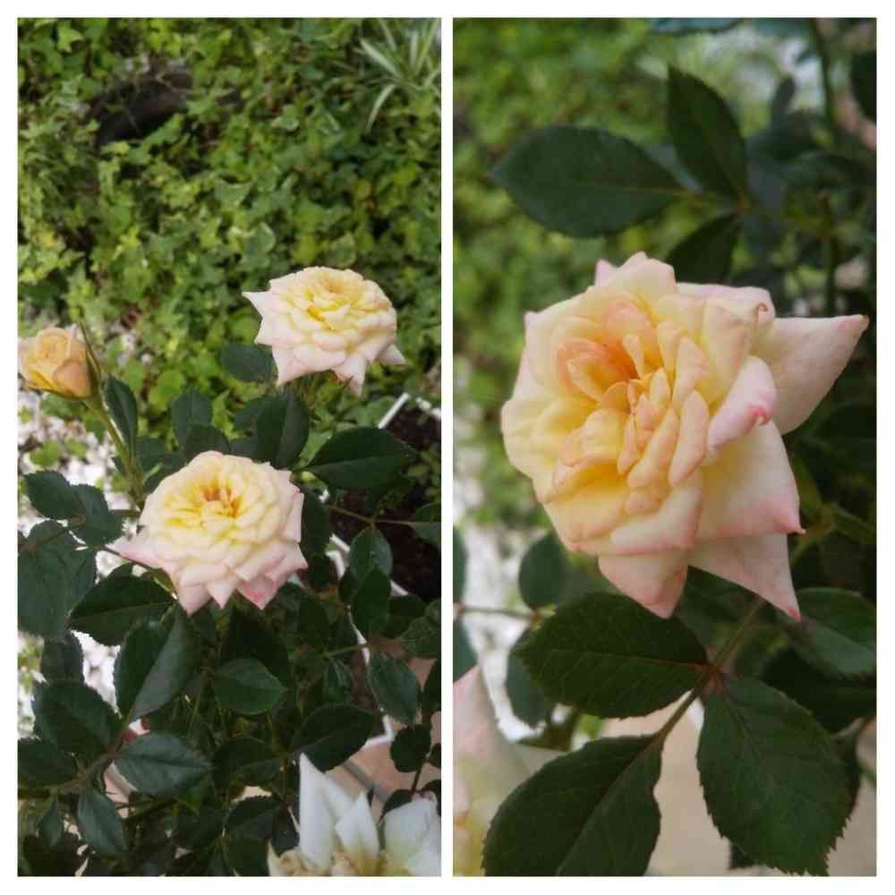 ミニバラ「ミルキーウェイ」が、だんだん白くなってる~と思ったのに、今朝はまた赤みを帯びてきている❗️😲