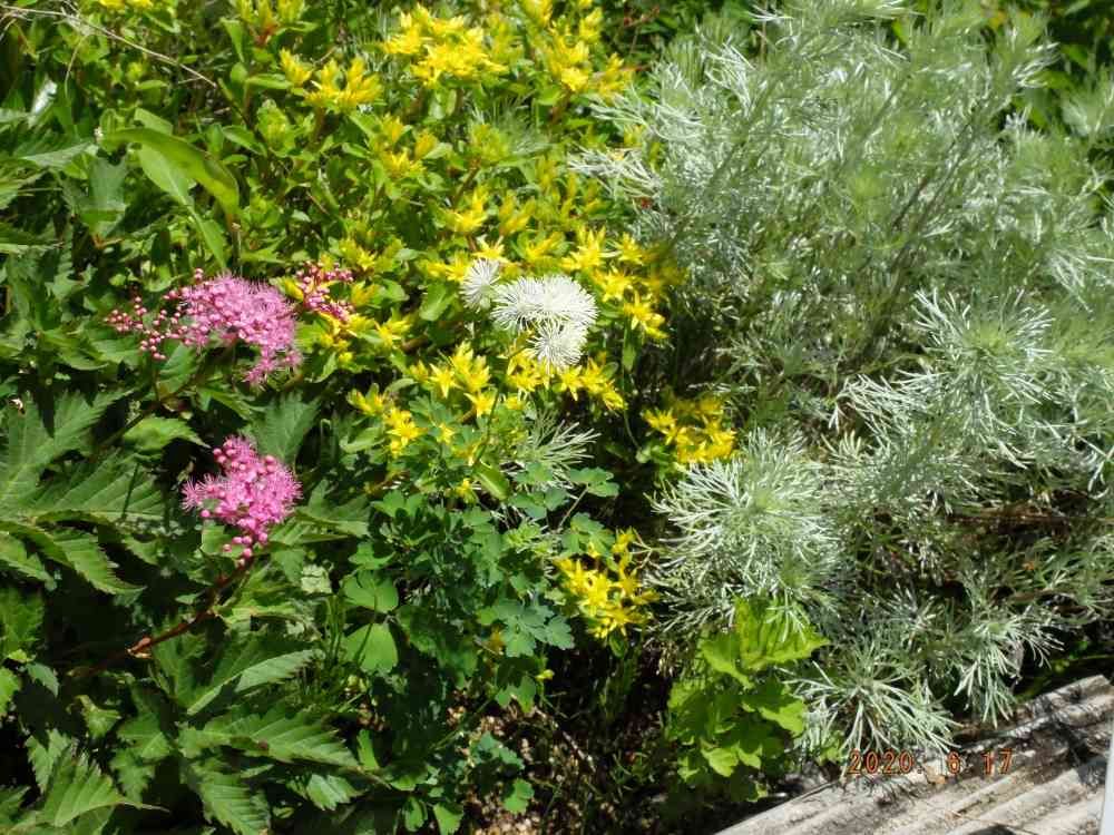 左からシモツケソウ、キリンソウ、カラマツソウ「白」、アサギリソウのコラボ