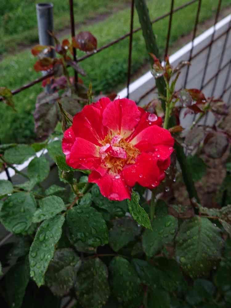 花が咲いてました、本来はピンクと白の絞りが入るんですけど、今は赤が強く出ています。