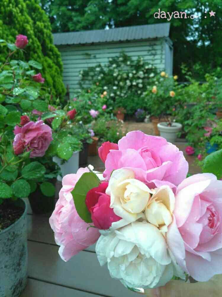 薔薇たちも成長してお花たくさん付けるようになったから、カラフルなブーケ💐作りも楽しんでます😍💖