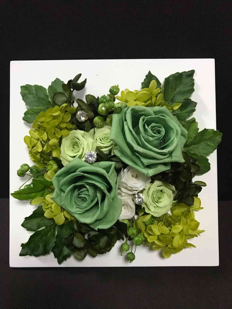 昨日の夕食後に作ったプリザーブドアレンジ💚