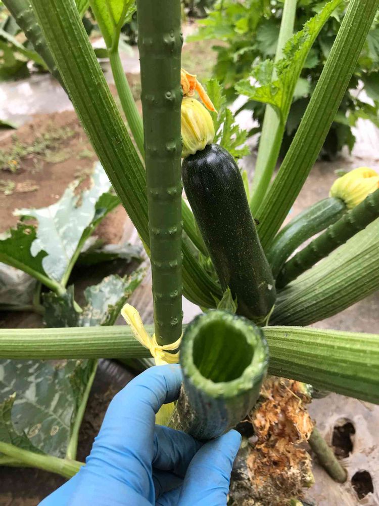 ズッキーニの葉っぱの中、空洞になってました〜💦