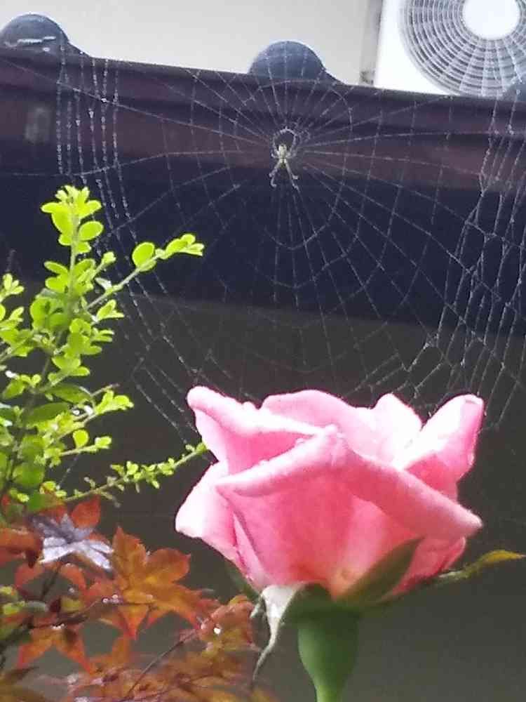 薔薇の花より、クモの巣に目がいってしまいました😅