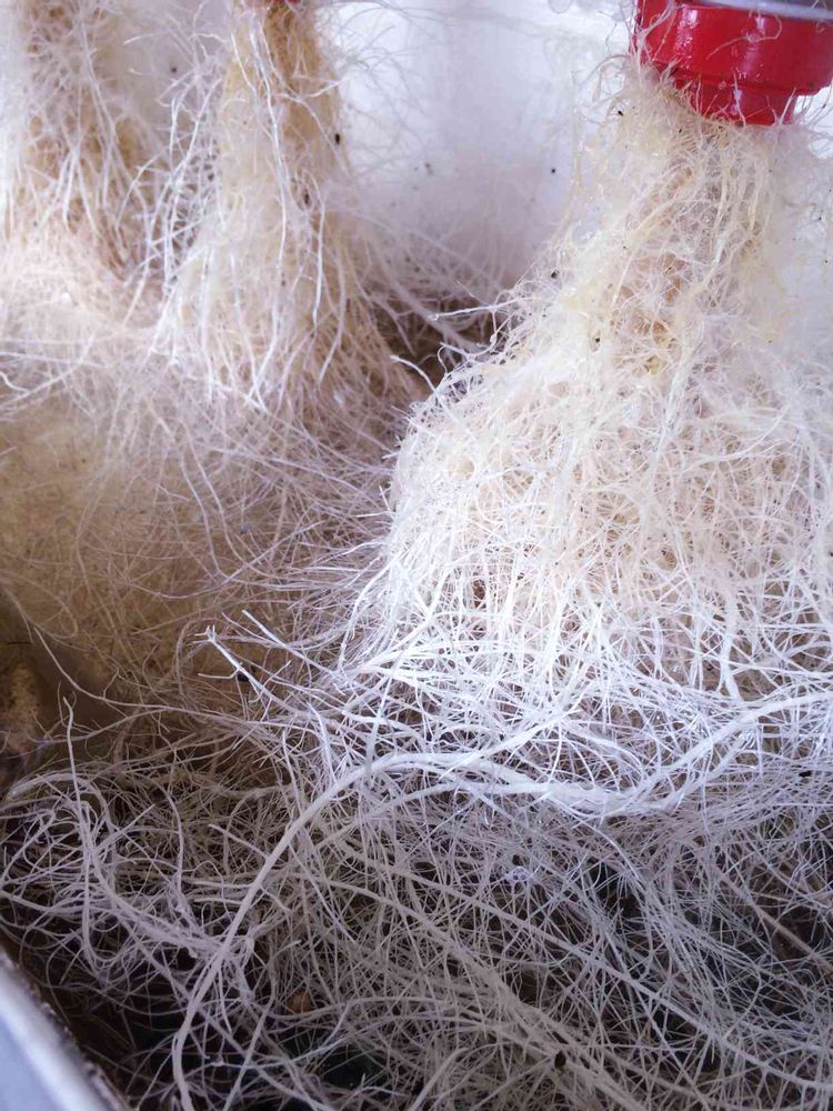 水耕栽培の根はこんなふうになっているんですね(ノ*ˇ∀ˇ)ノおぉ♪