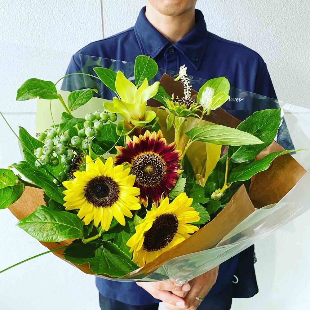 『ヒマワリとブルーベリーのシックな男前ブーケ』