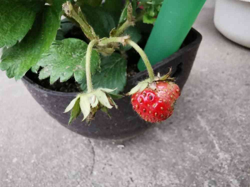 先日の、色づき初めた苺は緑色のカビっぽいものが生えて、ダメになってしまいました...