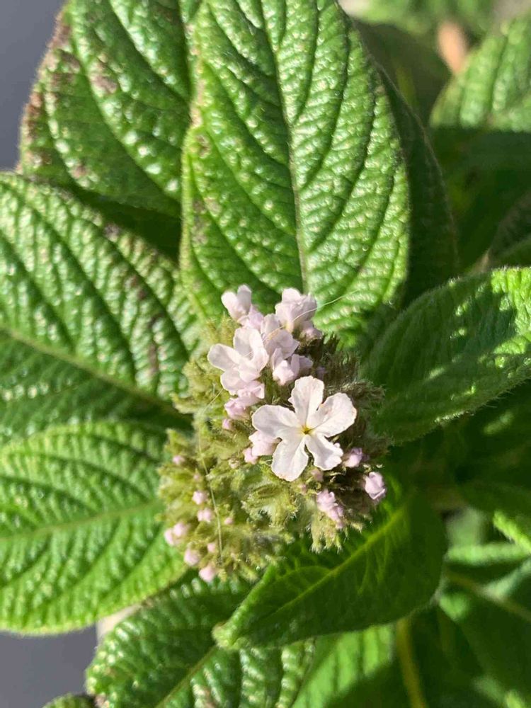 ヘリオトロープの白。紫と仲良く植えています。バニラの香りに癒されますね。