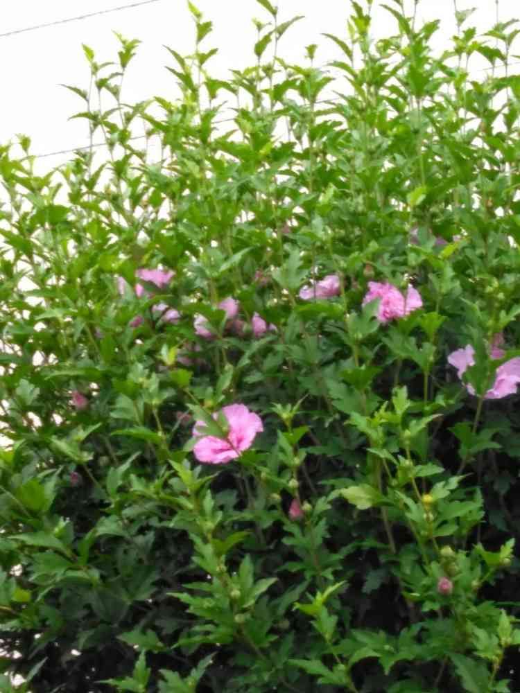 朝の散策の帰り道のお宅のお庭に、木槿の花が咲いていました。